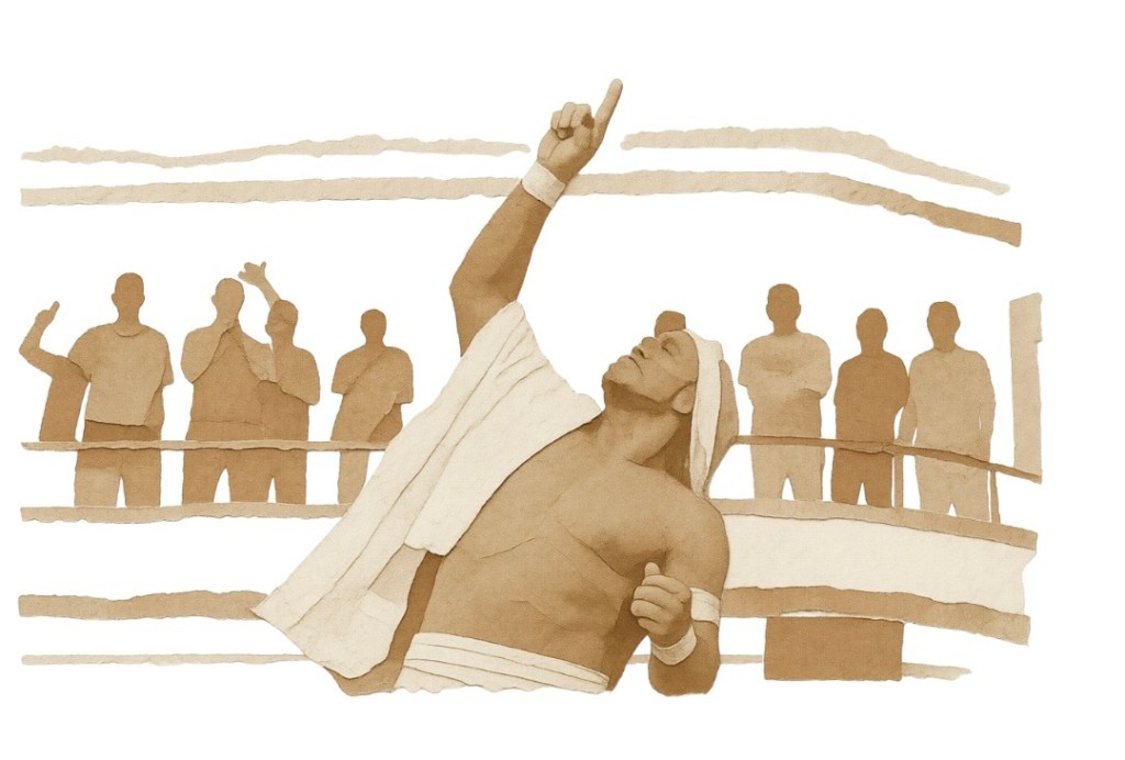 Before he raises his own above his head